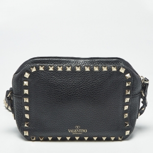 Valentino Black Leather Rockstud Rolling Crossbody Bag