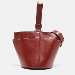 Alaia Brick Red Leather Rose Marie Bucket Bag