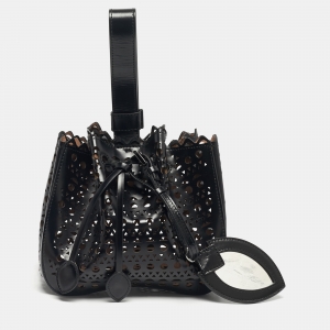 Alaia Black Laser Cut Leather Small Rose Marie Bucket Bag