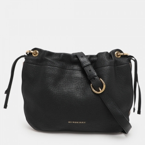 Burberry Black/Beige Leather and House Check Canvas Bingley Drawstring Bucket Bag