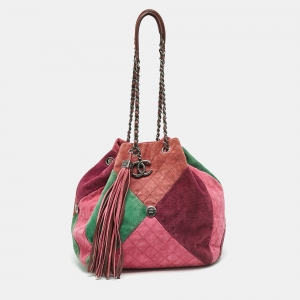 Chanel Multicolor Quilted Suede Patchwork Drawstring Bucket Bag
