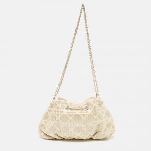 Dior Dusty Ivory Cannage Beaded Fabric Dream Bucket Bag