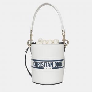 Dior White/Navy Blue Leather Vibe Bucket Bag