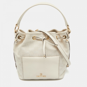 Michael Kors Natural Logo Jacquard Canvas Medium Maeve Bucket Bag