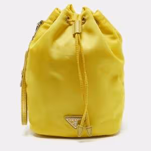 Prada Yellow Leather and Nylon Drawstring Bucket Bag