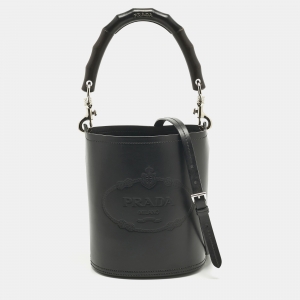 Prada Black Leather Drawstring Bucket Bag