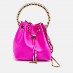 Jimmy Choo Fuchsia Satin Bon Bon Crystal Embellished Bucket Bag