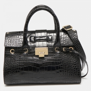 Jimmy Choo Black Croc Embossed Leather Rosalie Top Handle Bag