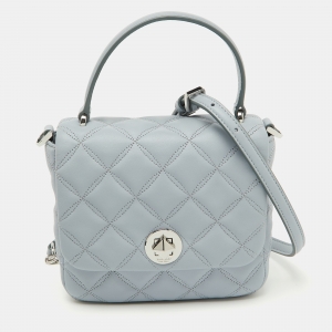 Kate Spade Light Blue Quilted Leather Natalia Square Top Handle Bag
