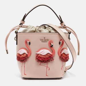 Kate Spade Pink Leather By The Pool Flamingo Pippa Bucket Bag