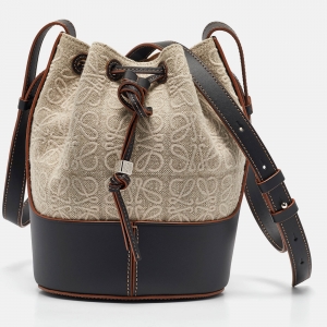 Loewe Beige/Black Anagram Jacquard Canvas and Leather Balloon Bucket Bag