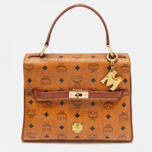 MCM Cognac Visetos Coated Canvas Heritage Top Handle Bag