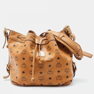 MCM Cognac Visetos Coated Canvas and Leather Heritage Drawstring Bucket Bag
