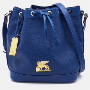 MCM Blue Leather RGB Story Drawstring Bucket Bag