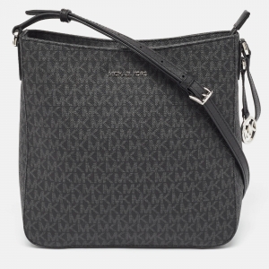 Michael Kors Black Signature Coated Canvas and Leather Large Jet Set Travel Messenger Bag