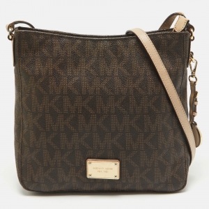 MICHAEL Michael Kors Brown/Beige Sigature Coated Canvas and Leather Jet Set Travel Messenger Bag
