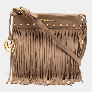 MICHAEL Michael Kors Beige Suede Fringe Billy Shoulder Bag
