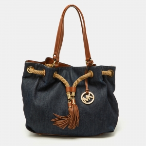 MICHAEL Michael Kors Navy Blue/Brown Denim and Leather Marina Drawstring Bucket Bag