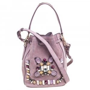 Ralph Lauren Purple Suede Crystal Embellished Drawstring Bucket Bag