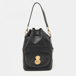 Ralph Lauren Black Leather Ricky Drawstring Bucket Bag