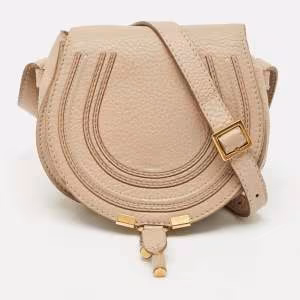 Chloe Beige Leather Mini Marcie Saddle Crossbody Bag