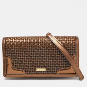 Burberry Bronze Woven Leather and Suede Flap Shoulder Bag