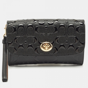 Coach Black Signature Embossed Patent Leather Chain Crossbody Bag