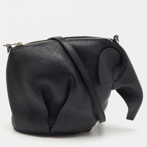 Loewe Black Leather Mini Striped Elephant Crossbody Bag