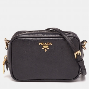 Prada Black Saffiano Leather Mini Zip Top Camera Sling Bag