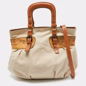 Alviero Martini 1A Classe Beige Geo Print Coated Canvas and Leather Top Handle Bag