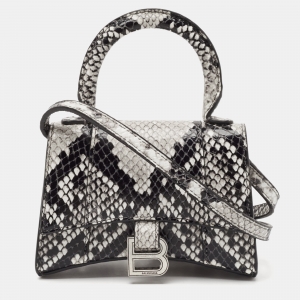 Balenciaga Black/Grey Python Embossed Leather Hourglass Top Handle Bag
