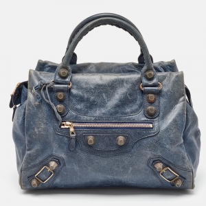 Balenciaga Blue Leather Motocross Classic City Satchel Bag