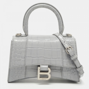 Balenciaga White Croc Embossed Leather Small Hourglass Top Handle Bag