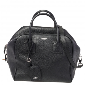 Burberry Black Grained Leather Greenwood Satchel
