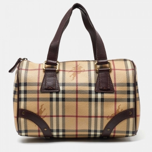 Burberry Beige/Brown Haymarket Check Coated Canvas Medium Bowling Bag
