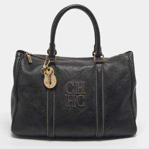 Carolina Herrera Black Embossed Leather Pushlock Flap Top Handle Bag