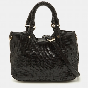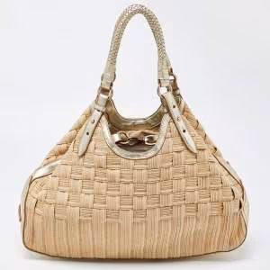 Cole Haan Beige/Gold Woven Canvas and Leather Satchel