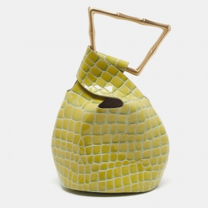 Cult Gaia Yellow/Green Croc Embossed Patent Leather Astraea Top Handle Bag