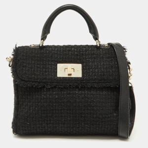 Kate Spade Black/White Lace Print Canvas and Leather Satchel
