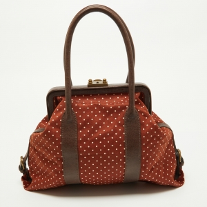 Marni Brown Polka Canvas and Leather Frame Bag