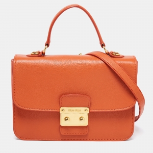 Miu Miu Orange/Red Madras Leather Push Lock Flap Top Handle Bag