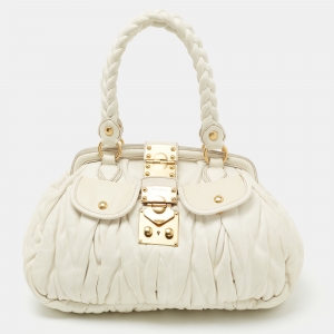 Miu Miu White Matelassé Nappa Leather Turnlock Top Handle Bag