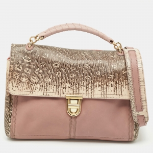 Nina Ricci Mauve Leather and Lizard Flap Top Handle Bag