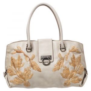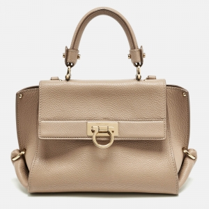 Salvatore Ferragamo Beige Leather Hortense Top Handle Bag