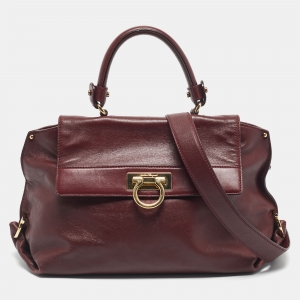 Salvatore Ferragamo Burgundy Leather Kelly Top Handle Bag