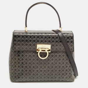 Salvatore Ferragamo Grey Signature Embossed Leather Gancini Top Handle Bag