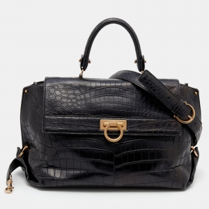Salvatore Ferragamo Black Leather Katia Top Handle Bag