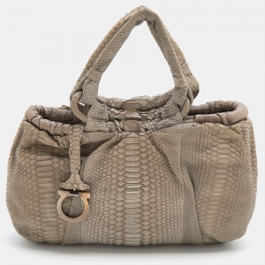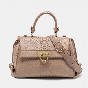 Salvatore Ferragamo Brown/Beige Python Gancini Satchel