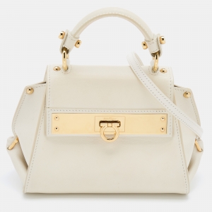 Salvatore Ferragamo White Leather Gancio Zip Satchel