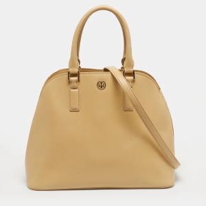Tory Burch Two Tone Beige Leather Robinson Dome Satchel